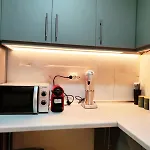 Along with coffee/tea making equipment, the property boasts an equipped kitchen featuring a refrigerator, a cooktop, and kitchenware. Thessaloniki airport is at a 15-minute driving distance, and Casa Bianca bus stop is at a moderate distance from the 70 m^2 apartment.